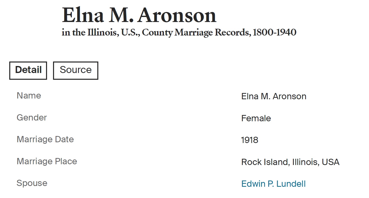 Elna Myrtle Aronson was born on March 17, 1900 in Orion, Henry, Illinois, USA. She and