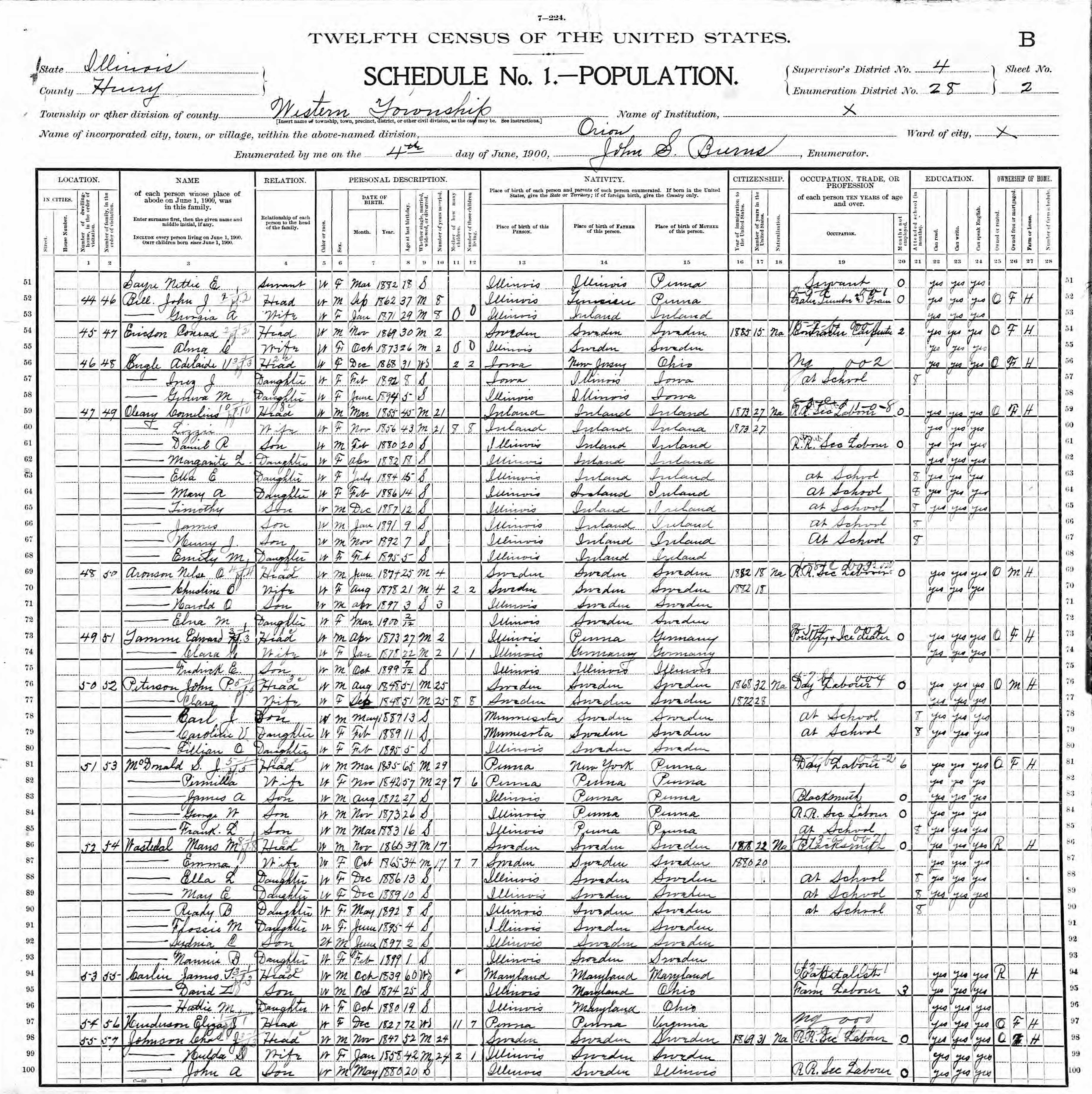 Aronson Family 1900 Federal Census Illinois, Lines 69-72