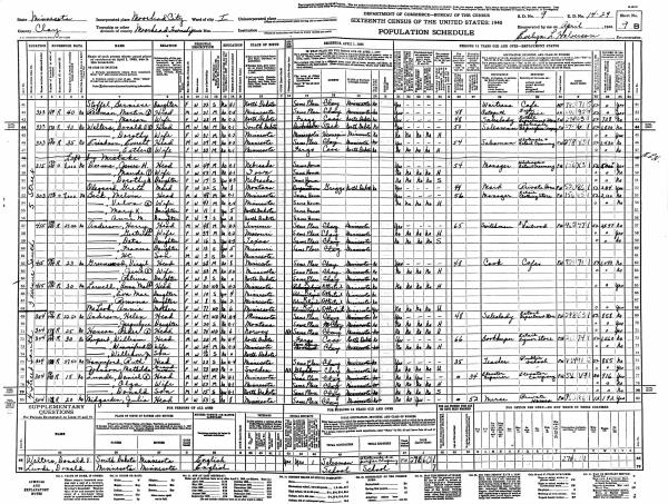 Hannaford Family 1940 Federal Census Minnesota, Lines 75-76