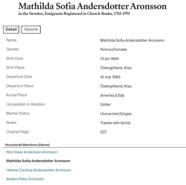 Family: Mathilda Sofia Andersdotter Born: January 13, 1869, Died: January 22, 1949