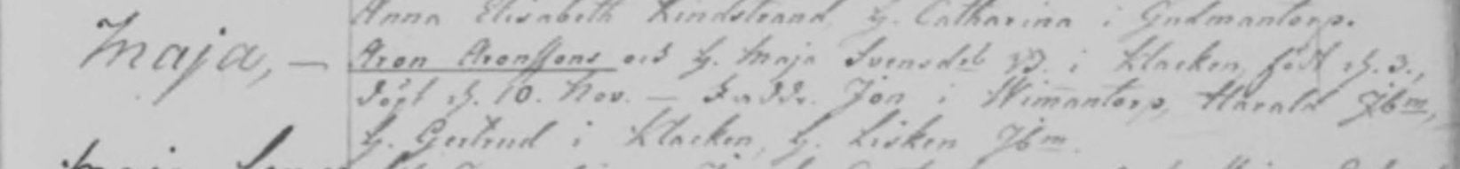 Maja Aronsdotter was born on November 3, 1793 in Klacken, Kisa, Östergötland, Sweden. She died.