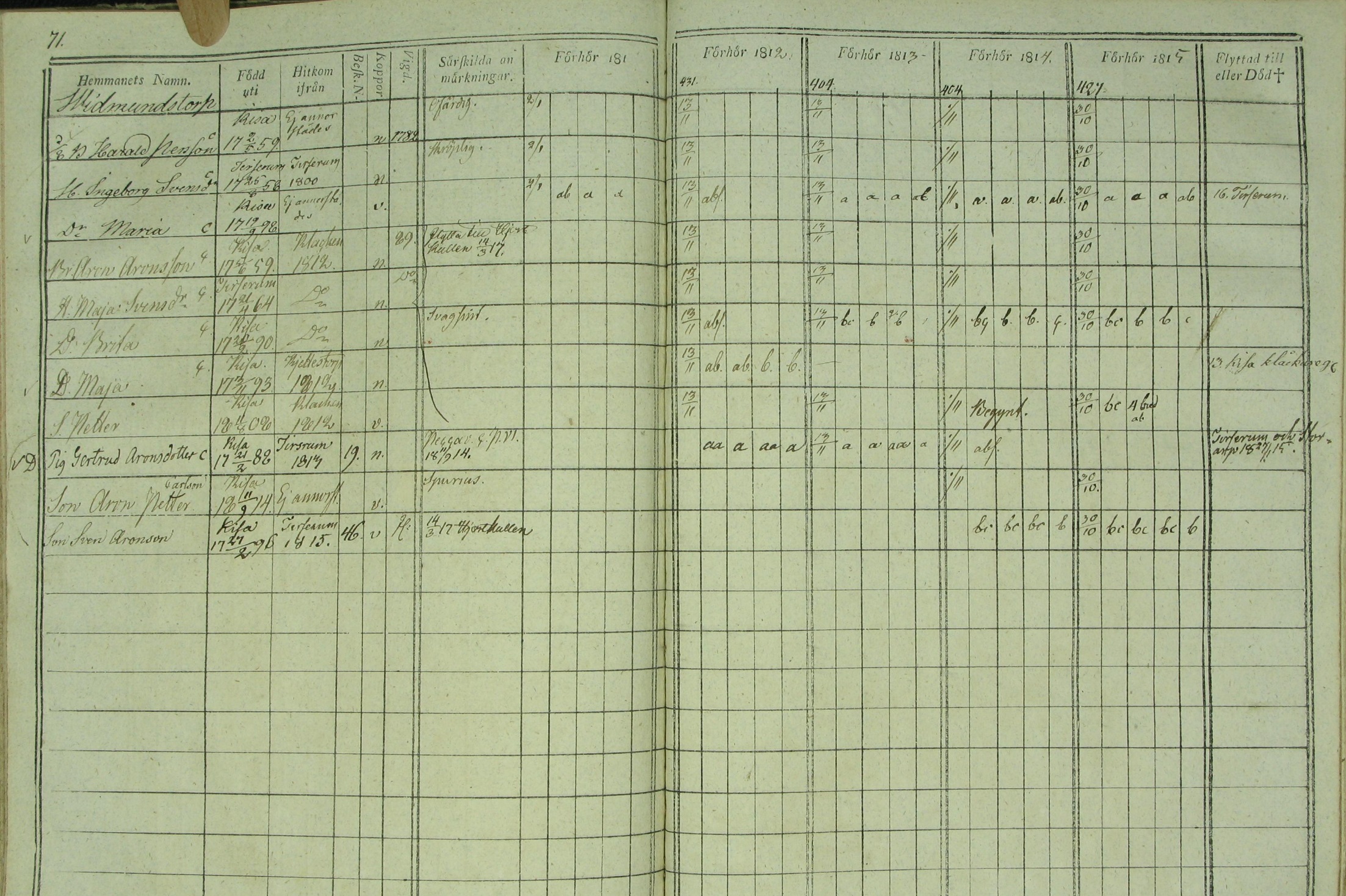 1811-1815 Widmundstorp, Kisa, Sweden Census, Lines 4-11
