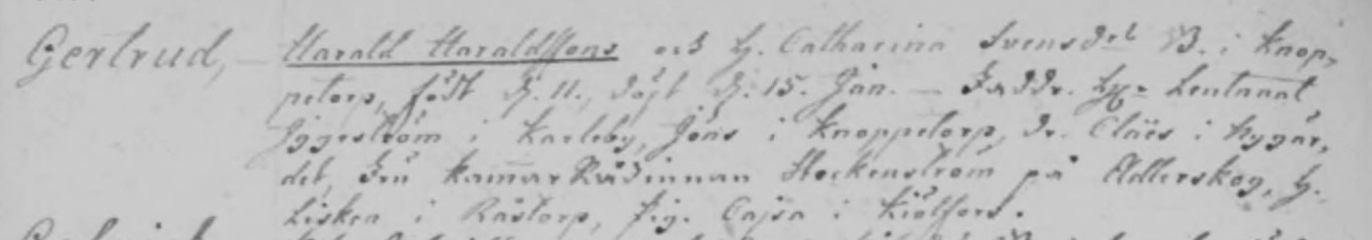 Gertrud Catrina Haraldsdotter was born on January 11, 1786 in Knoppetorp, Kisa, Östergötland, Sweden. She died.