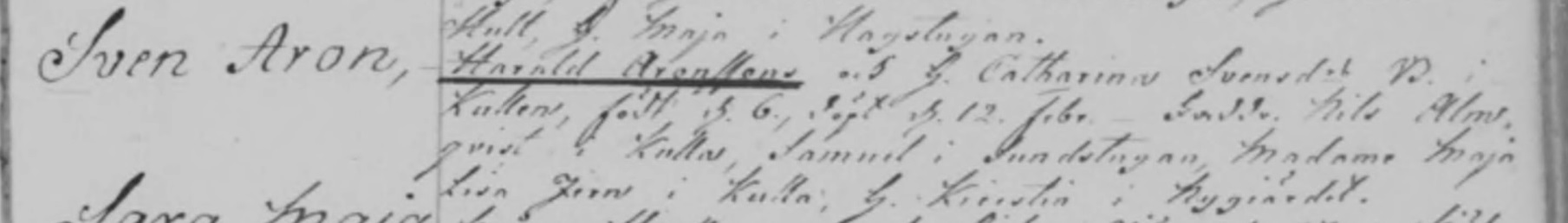 Sven Aron Haraldsson was born on February 6, 1797 in Kullen, Kisa, Östergötland, Sweden. He died.