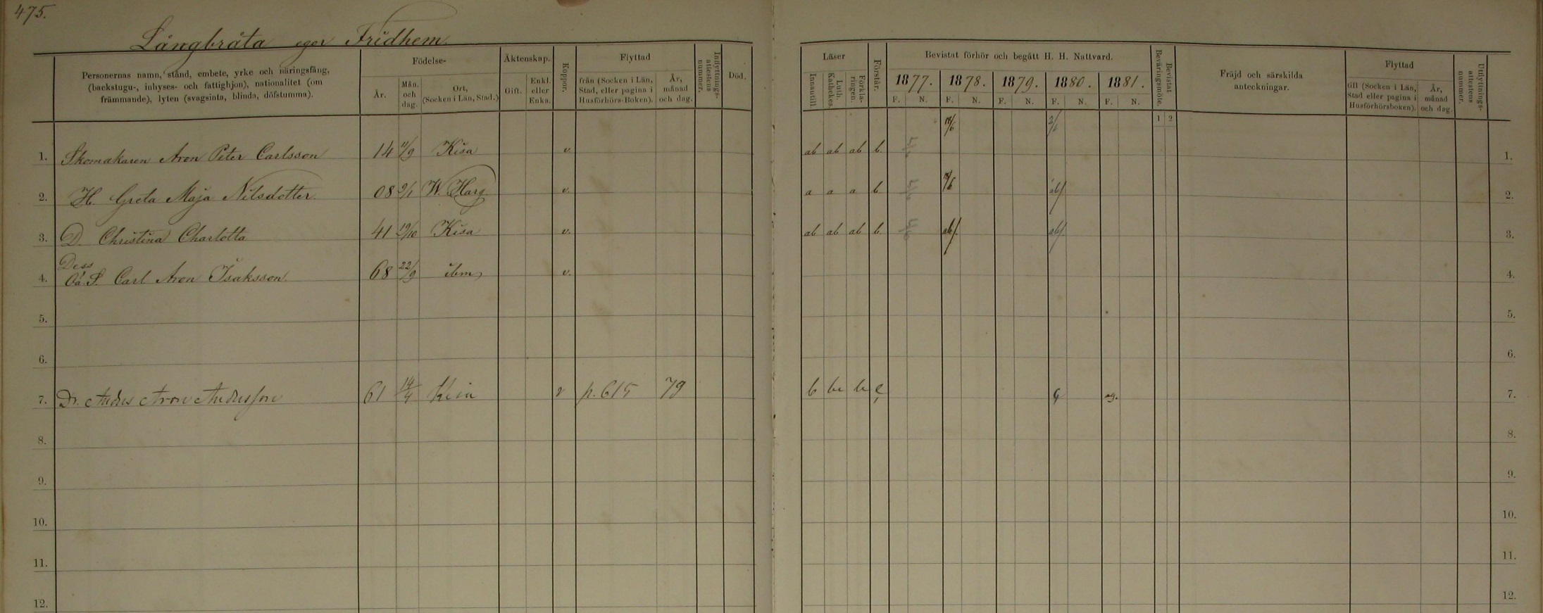 1877-1881 Langbrata, St. Friedhem, Sweden Census, Lines 1-8