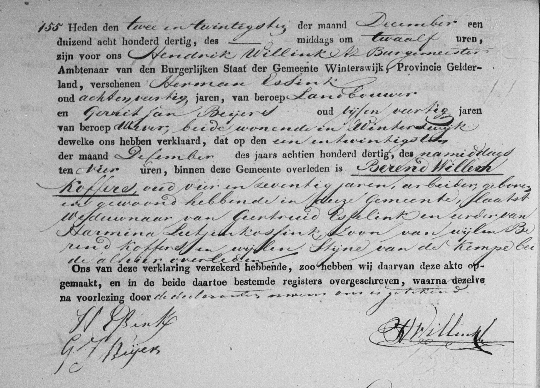 Berend Willem Koffers was born in 1756 in Winterswijk, Gelderland, Netherlands. He and