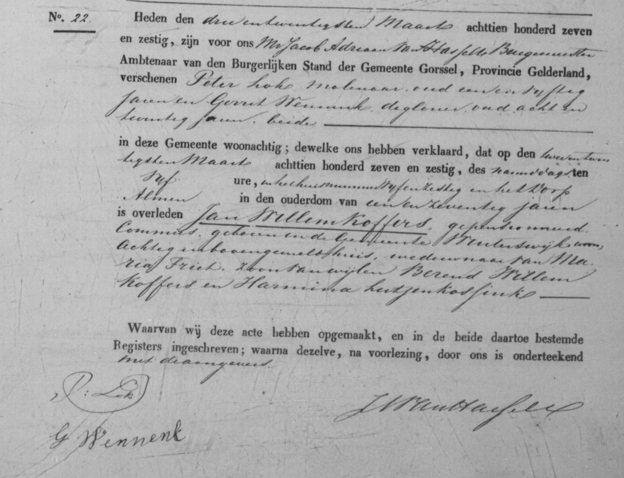 Jan Willem Koffers was born in 1793 in Winterswijk, Gelderland, Netherlands. He and