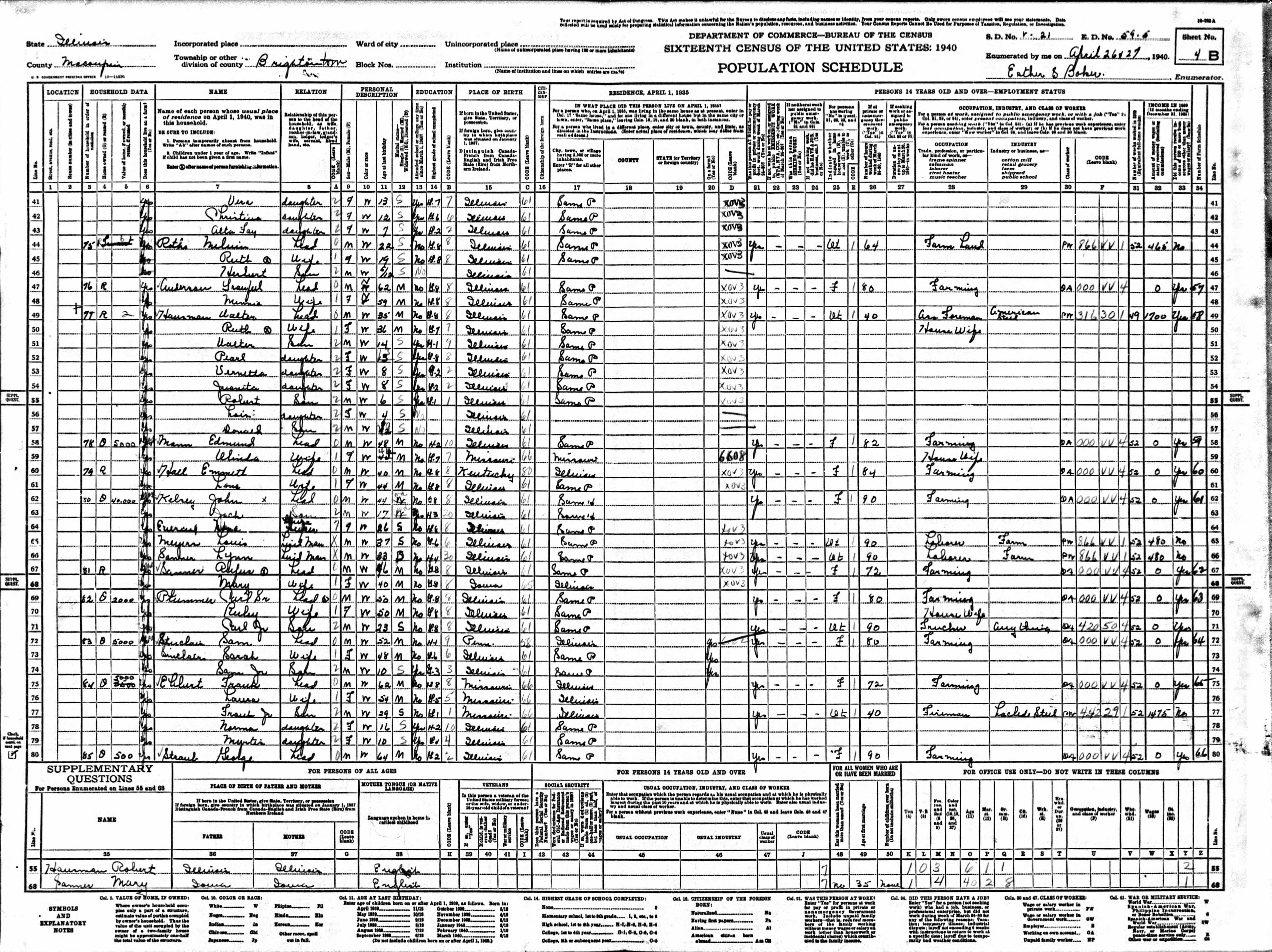 Hausman Family 1940 Federal Census Illinois, Lines 49-57