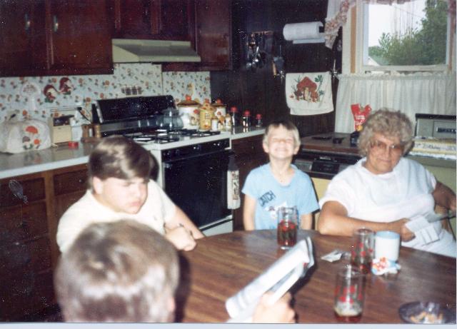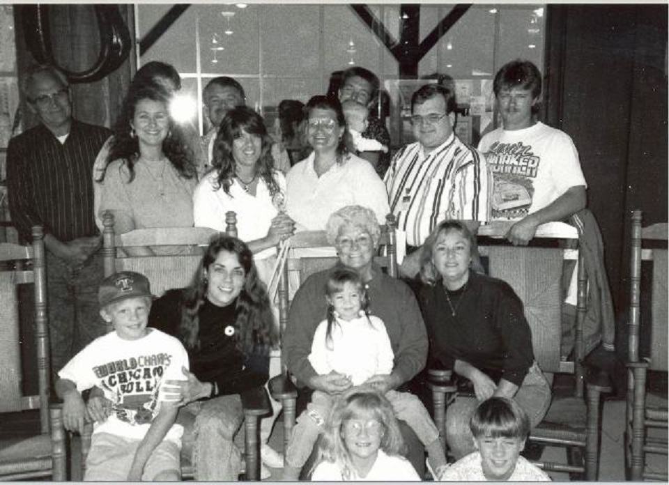Bill, Walter, and Dave Hausman, Anna Ruth Atchison, Juantia, Bob, Lois, Walter, Pearl, Larry, Vernetta, and Don Hausman