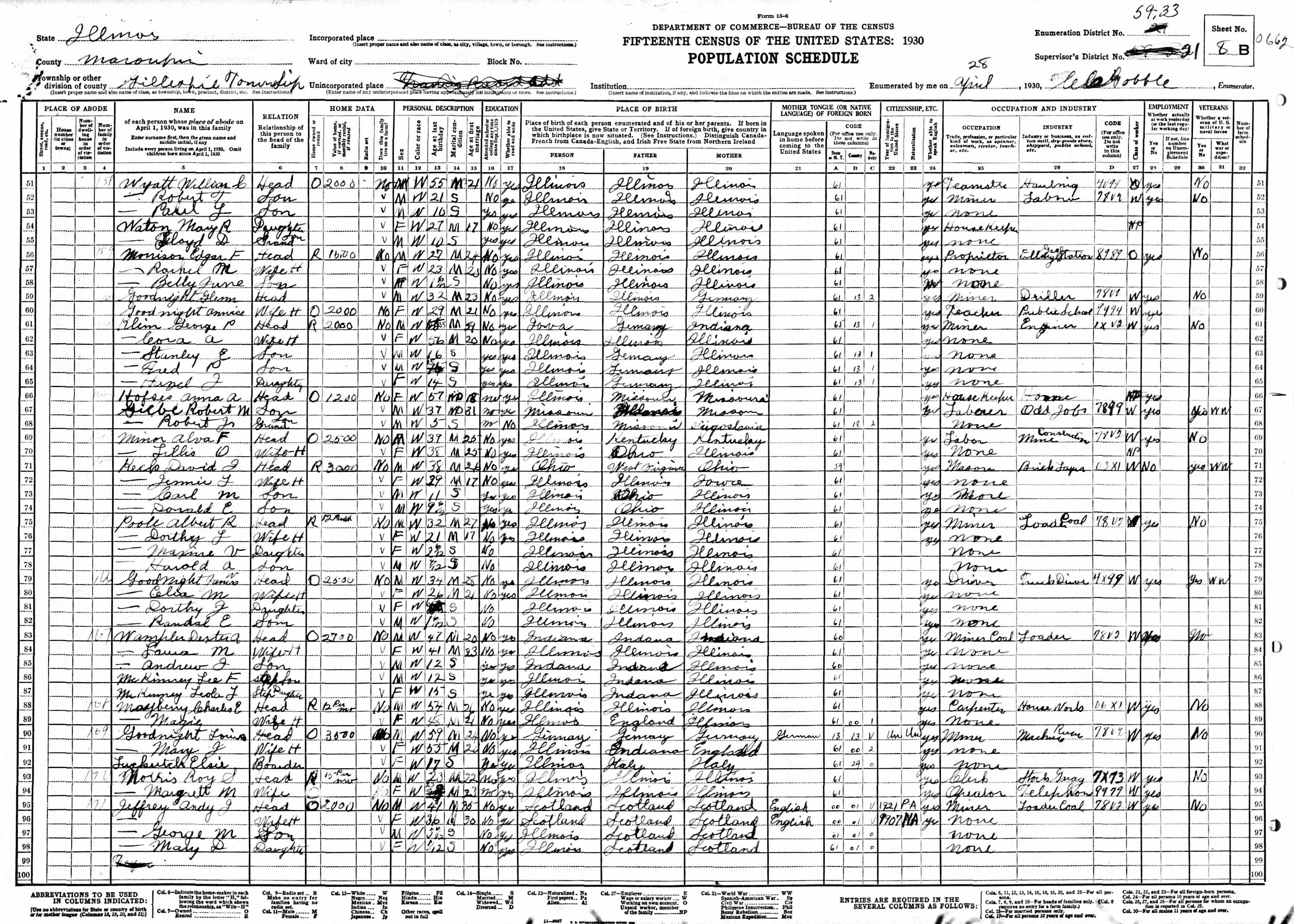 Klein Family 1930 Federal Census Illinois, Lines 61-65