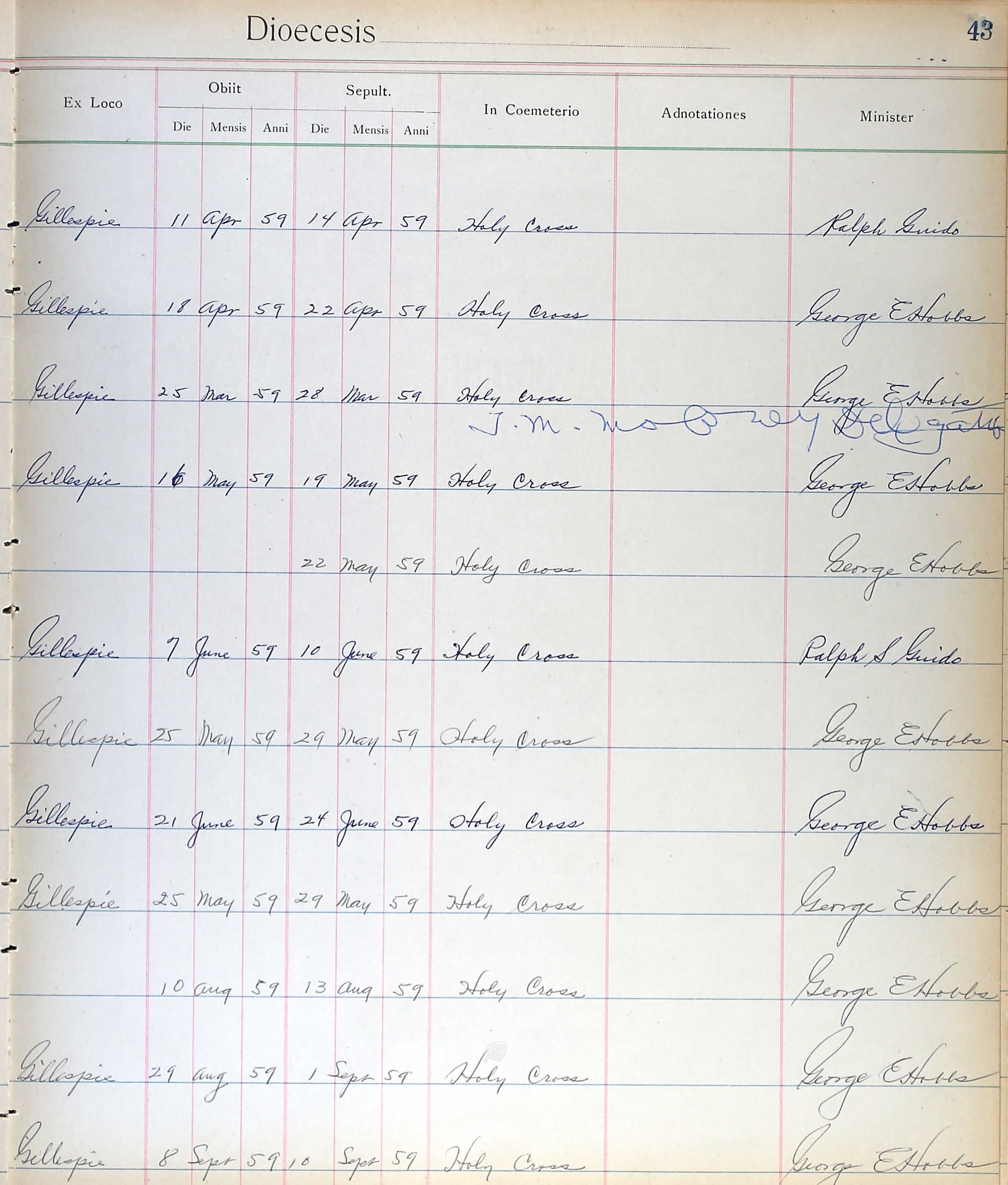 1959 Church Death Record, Lines 7 and 9, Page 1