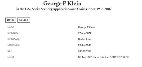 George P. Klein was born on August 27, 1874 in Baxter, Jasper, Iowa, USA. He and
