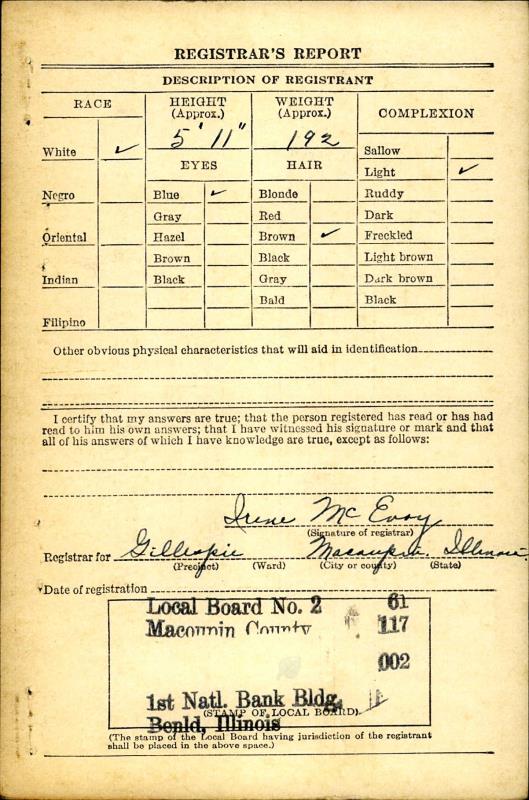 Cora Alice Ferguson were married in April 1910. He died in 1960, at age ~86, in Gillespie, Macoupin, Illinois, USA. He was buried in Gillespie Cemetery, Gillespie, Illinois.