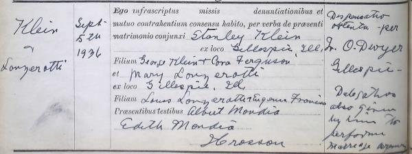 Stanley Eugene Klein were married on September 5, 1936 in Alton, Madison, Illinois, USA. She died on November 11, 1998, at age 87.