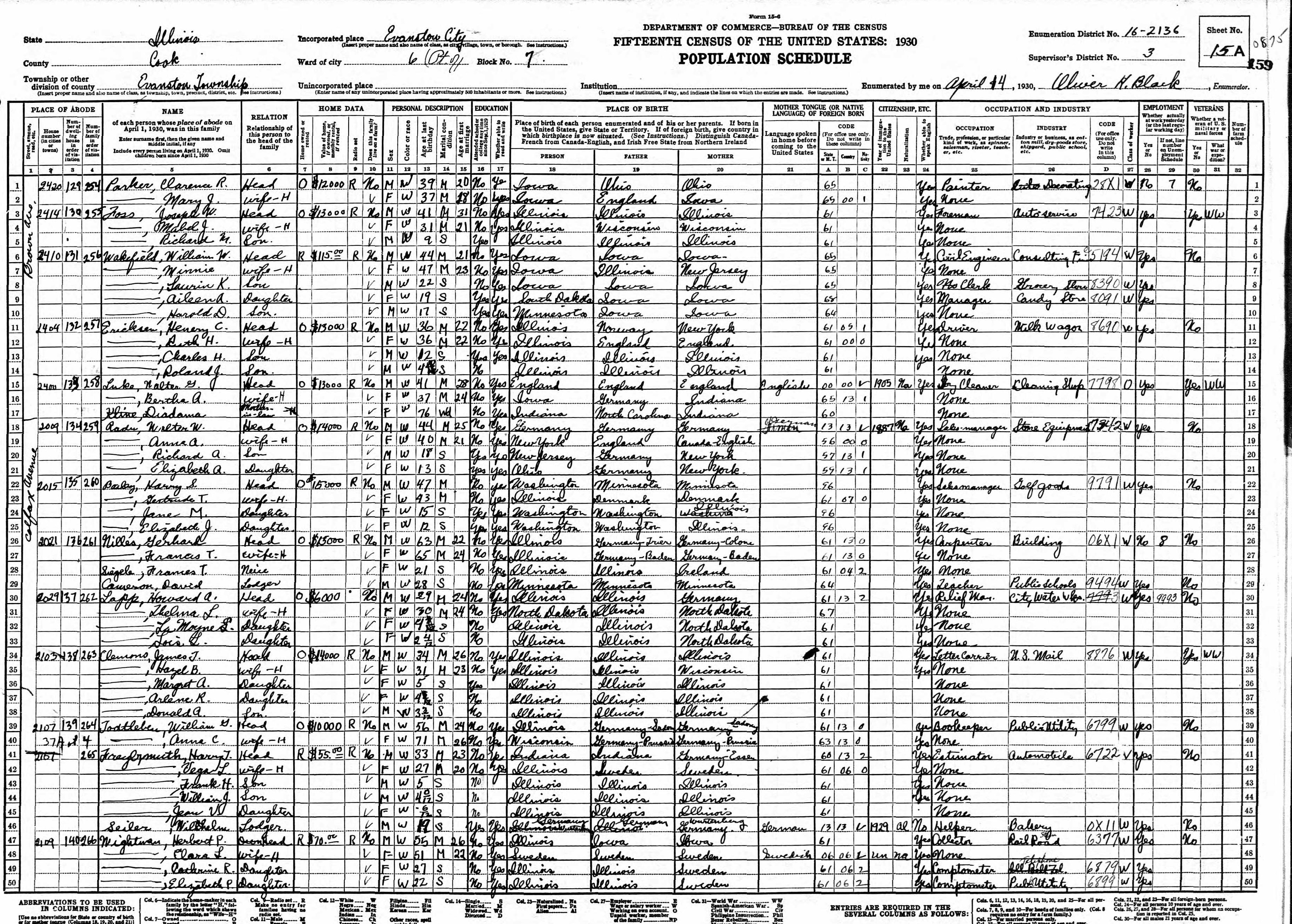 Fluke Family 1930 Federal Census Illinois, Lines 15-17