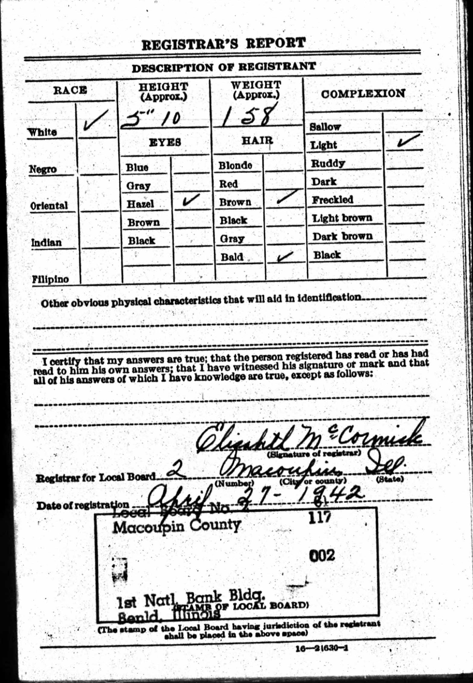1942 World War II Registration Page 1