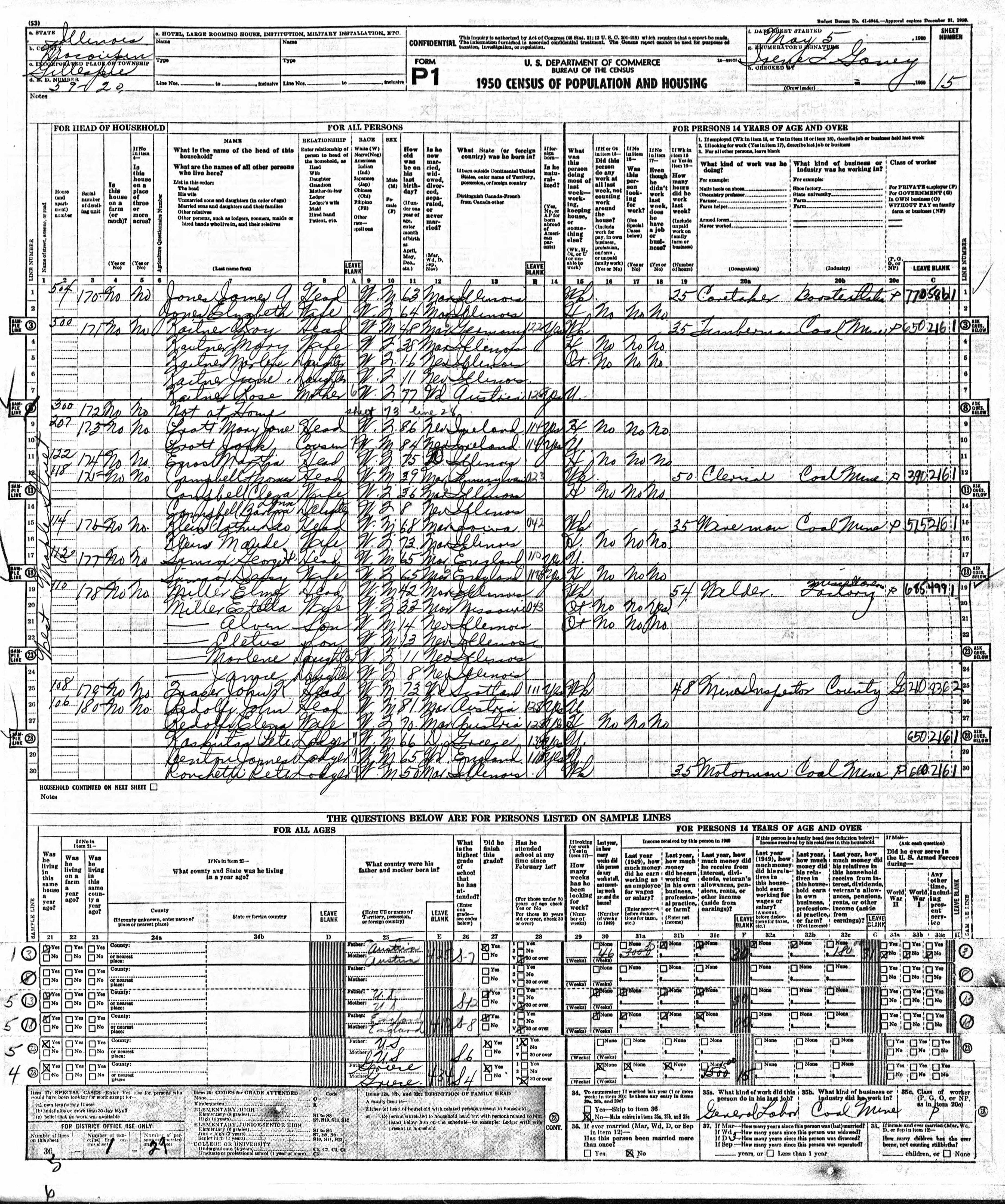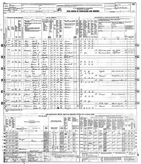 Klein Family 1950 Federal Census Illinois, Lines 15-16