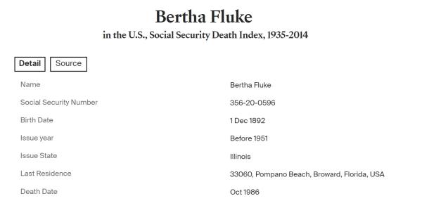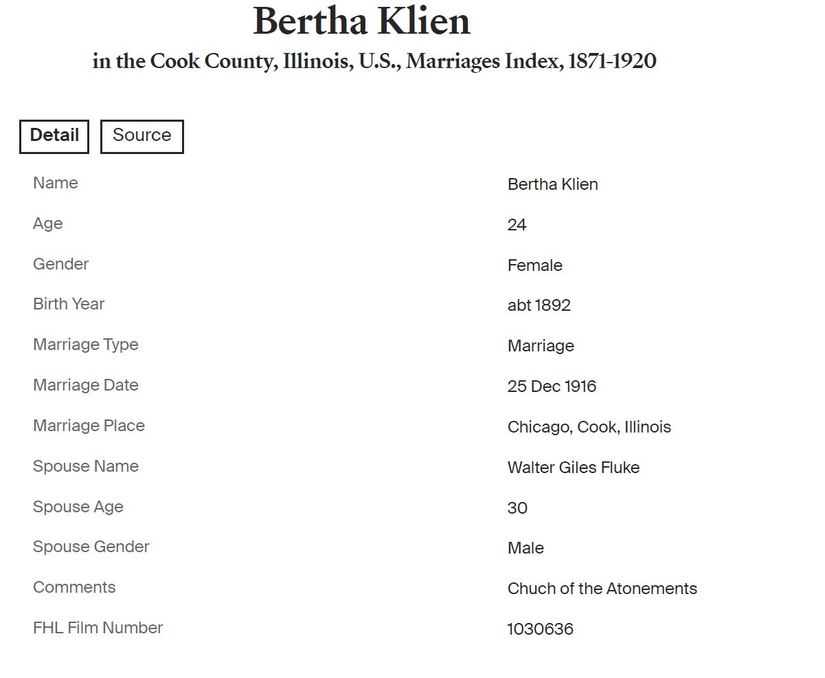 Walter Giles Fluke were married on December 25, 1916 in Chicago, Cook, Illinois, USA. She died in October 1986, at age 93, in Broward, Florida, USA. She was buried in Memorial Park Cemetery, Skokie, Illinois.