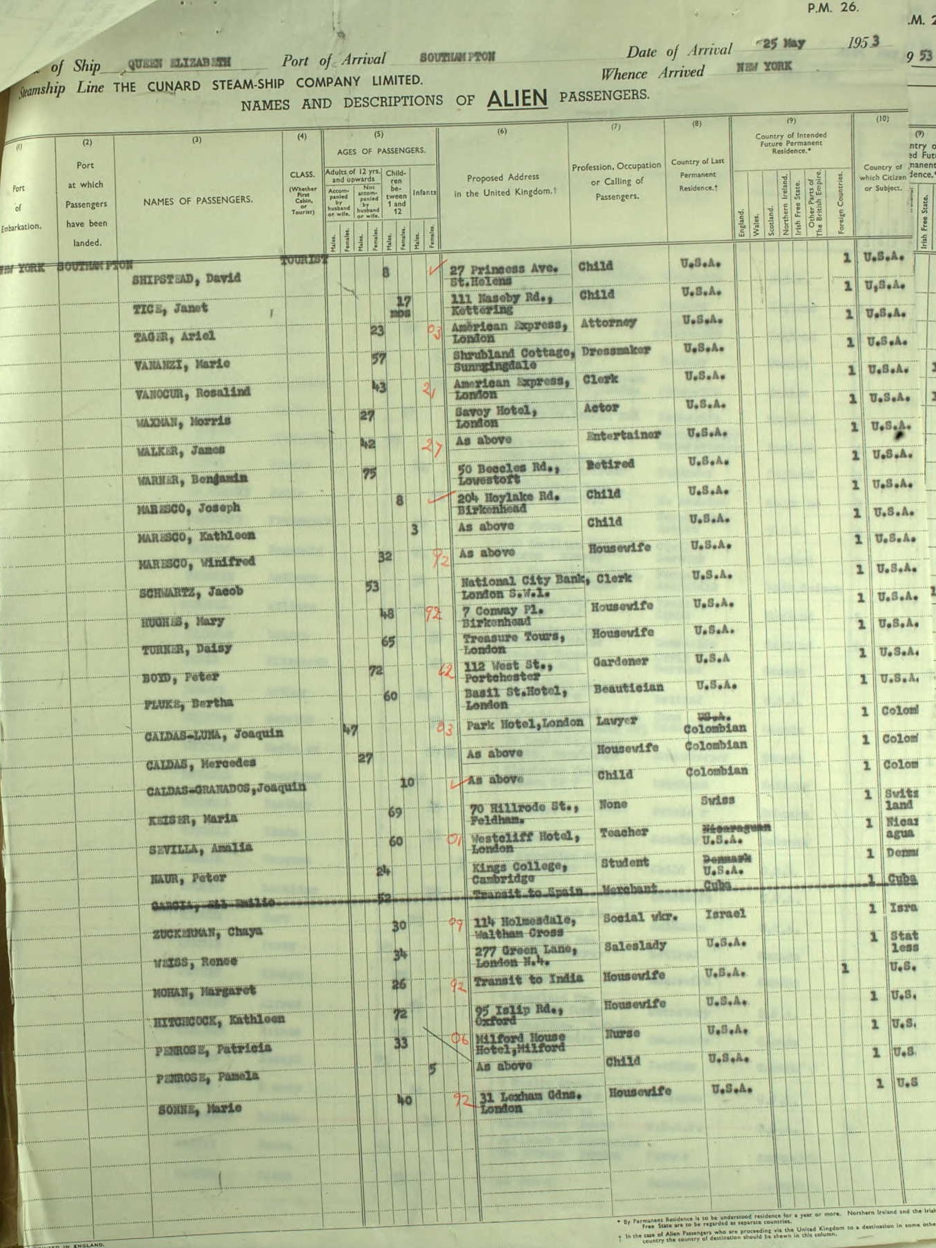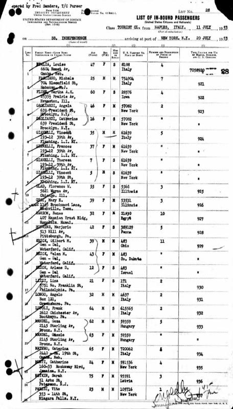1953 Ship Arrival Manifest, Line 3