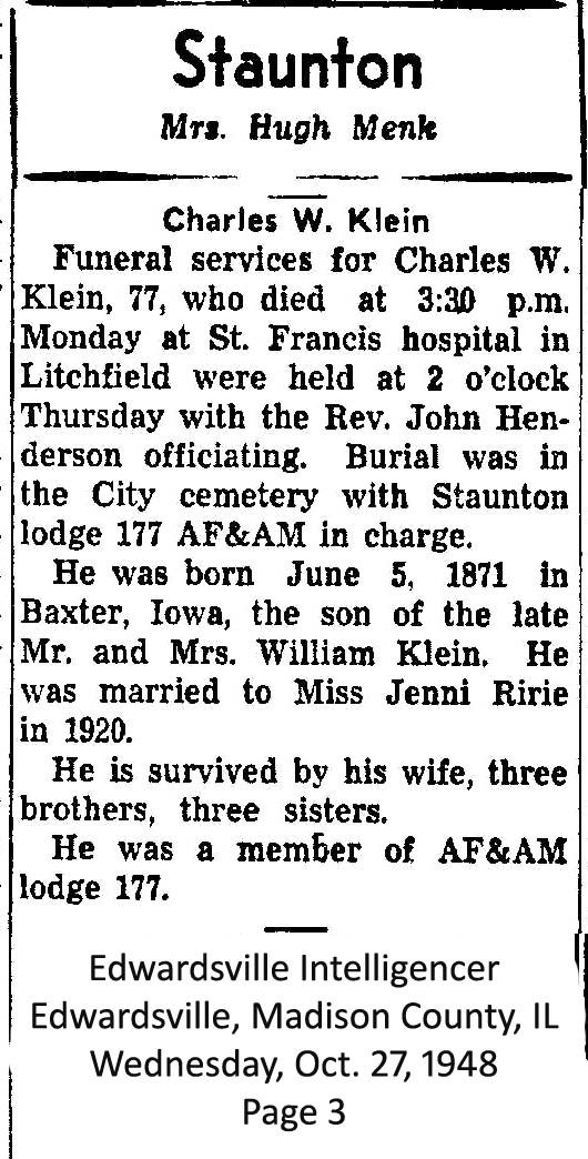 Frank Klein was born in 1879 in Iowa, USA. He died.