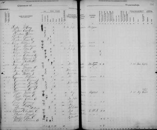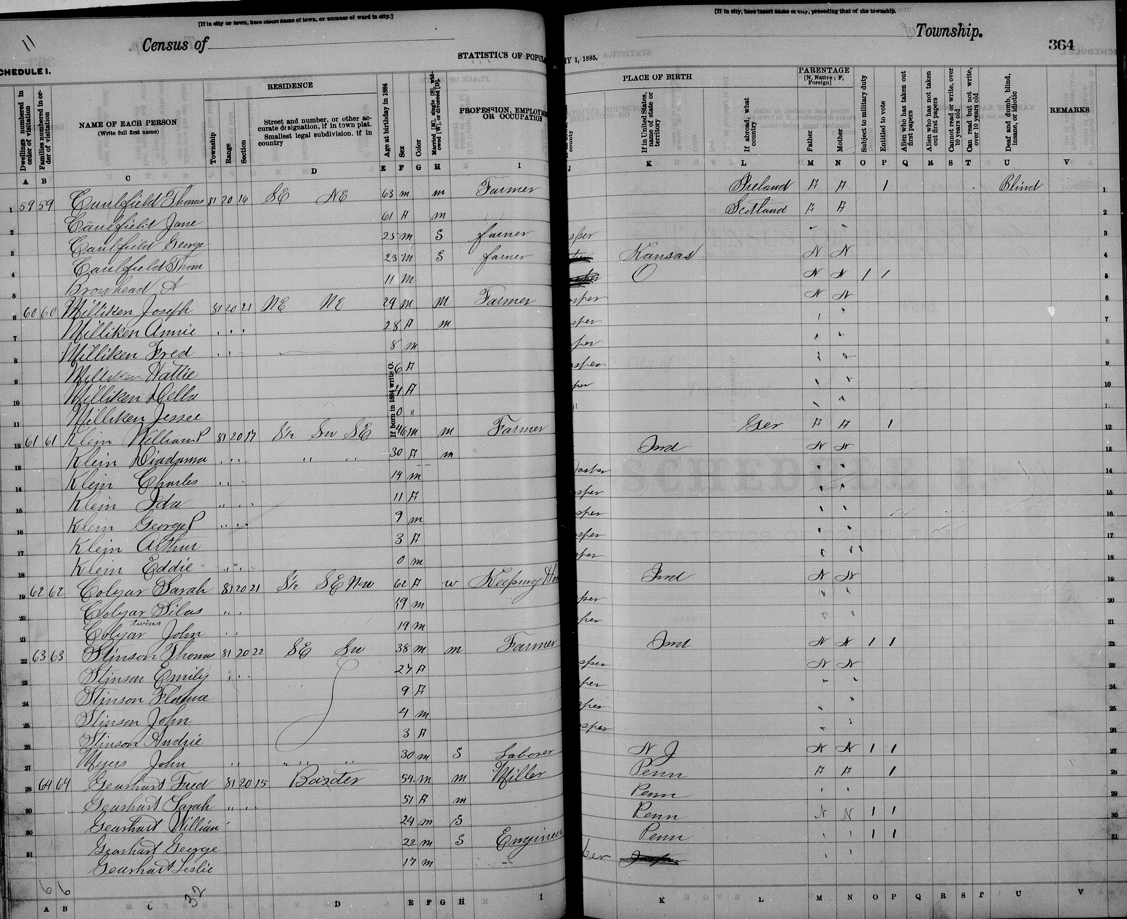 Klein Family 1885 State Census Iowa, Lines 12-18
