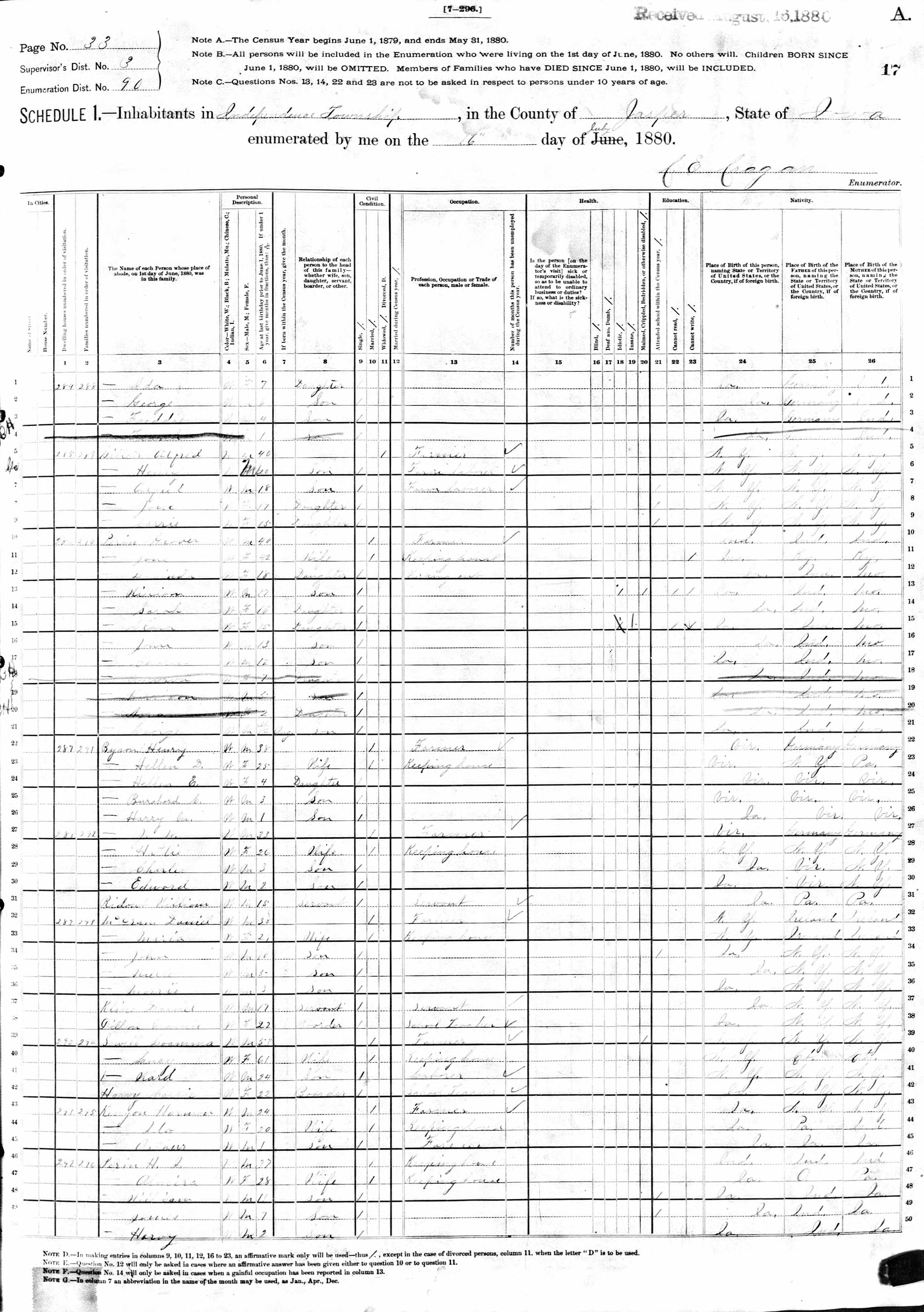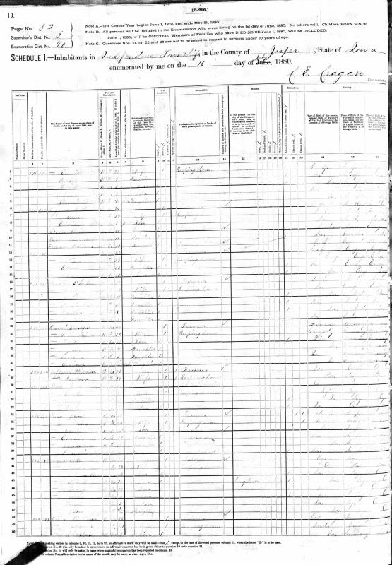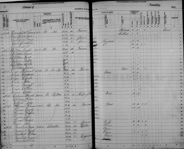 Klein Family 1880 Federal Census Iowa, Lines 1-4