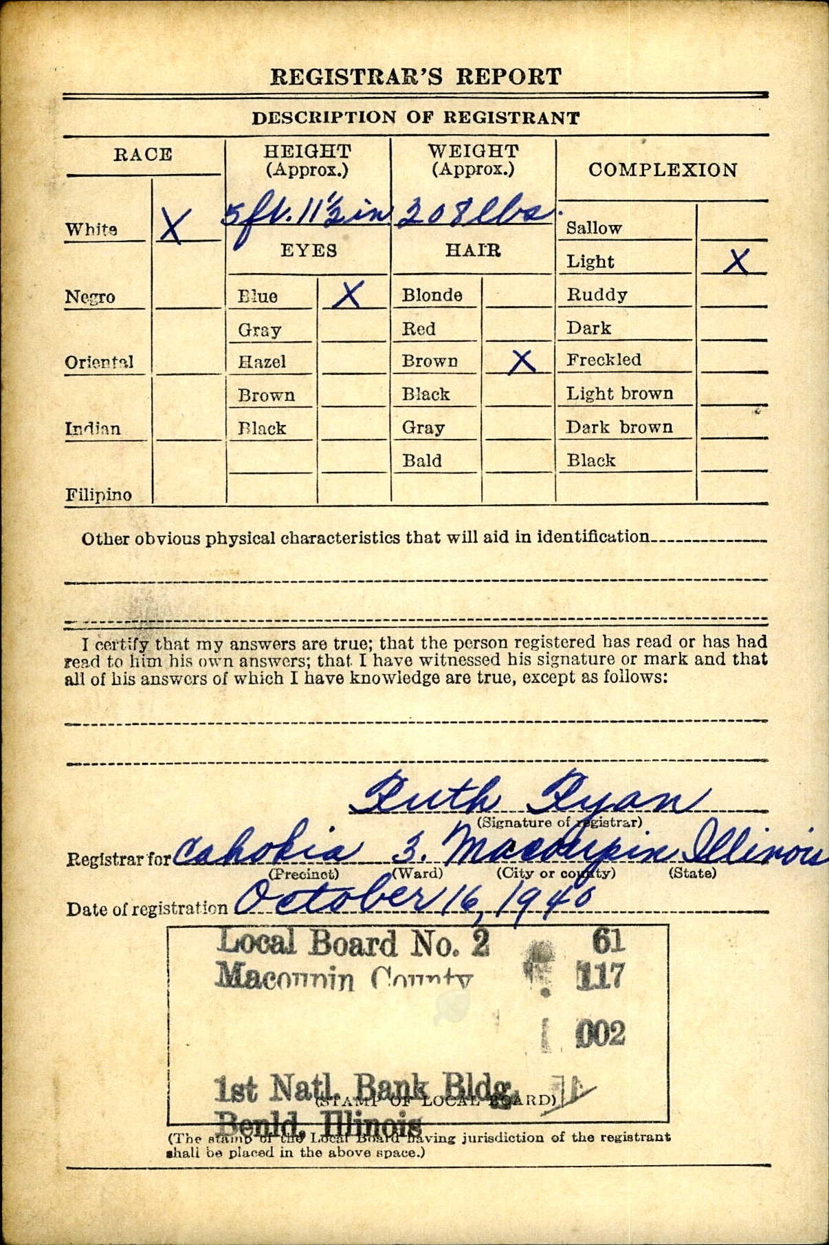 1940 World War II Registration Page 2