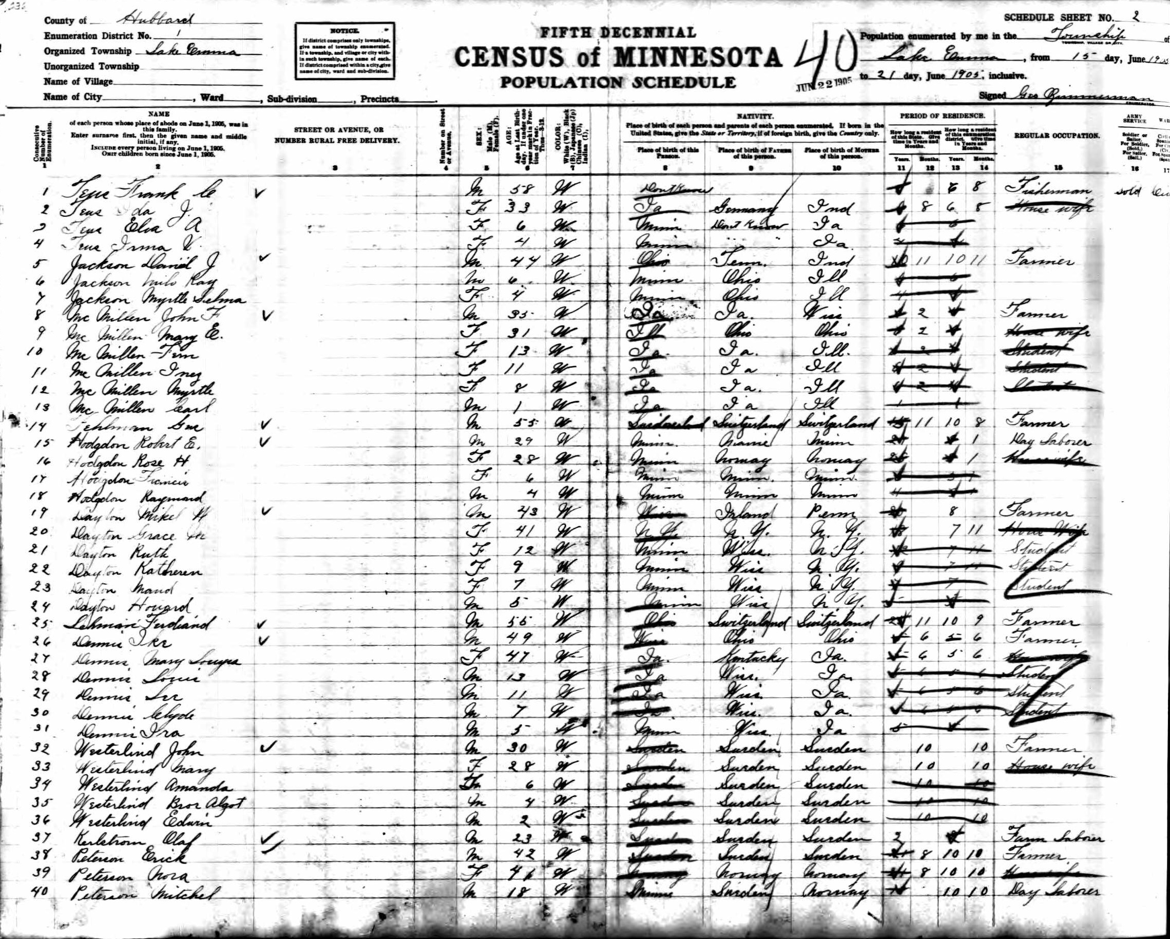 Teus Family 1905 State Census Minnesota, Lines 1-4
