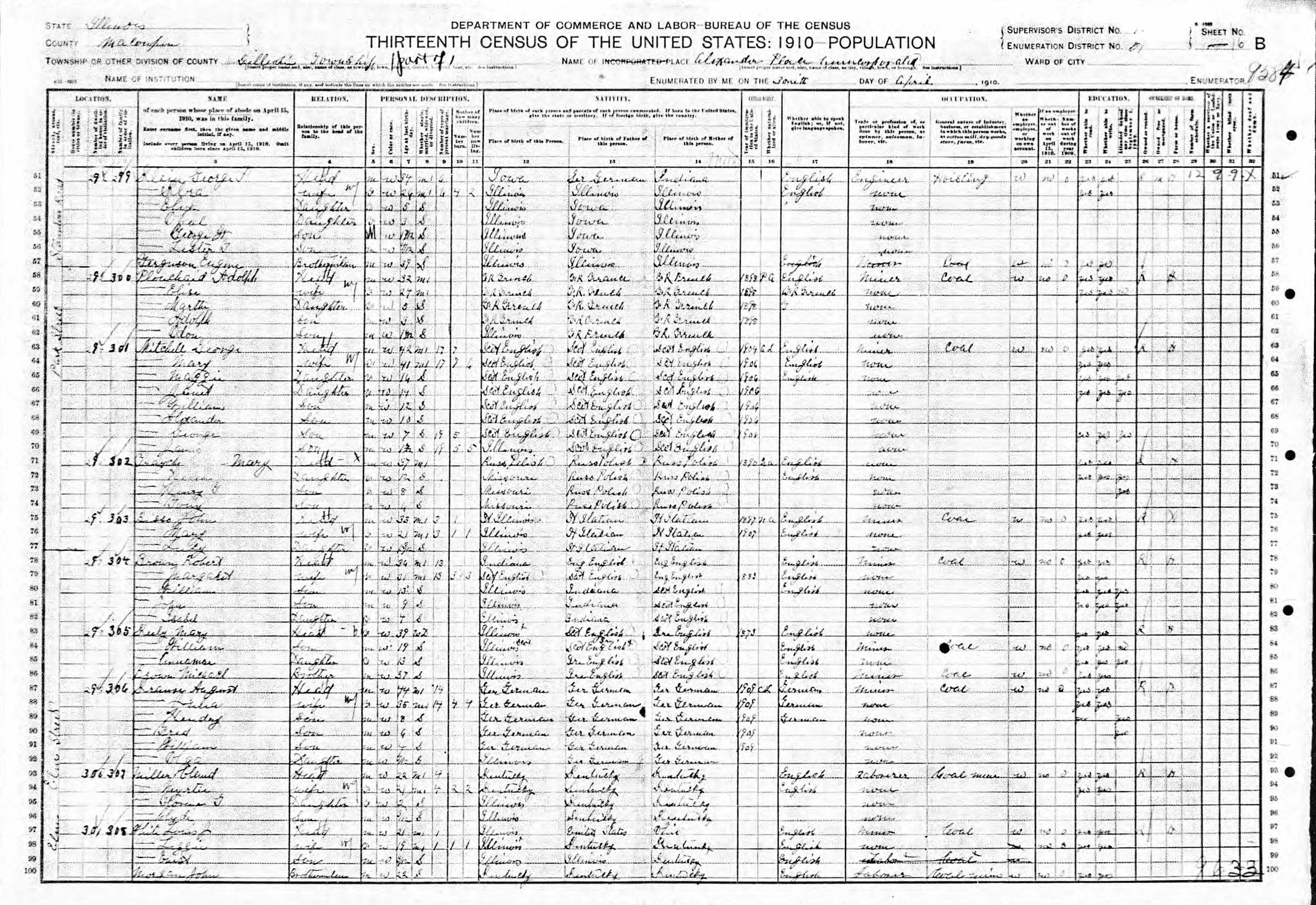 Klein Family 1910 Federal Census Illinois, Lines 1-6