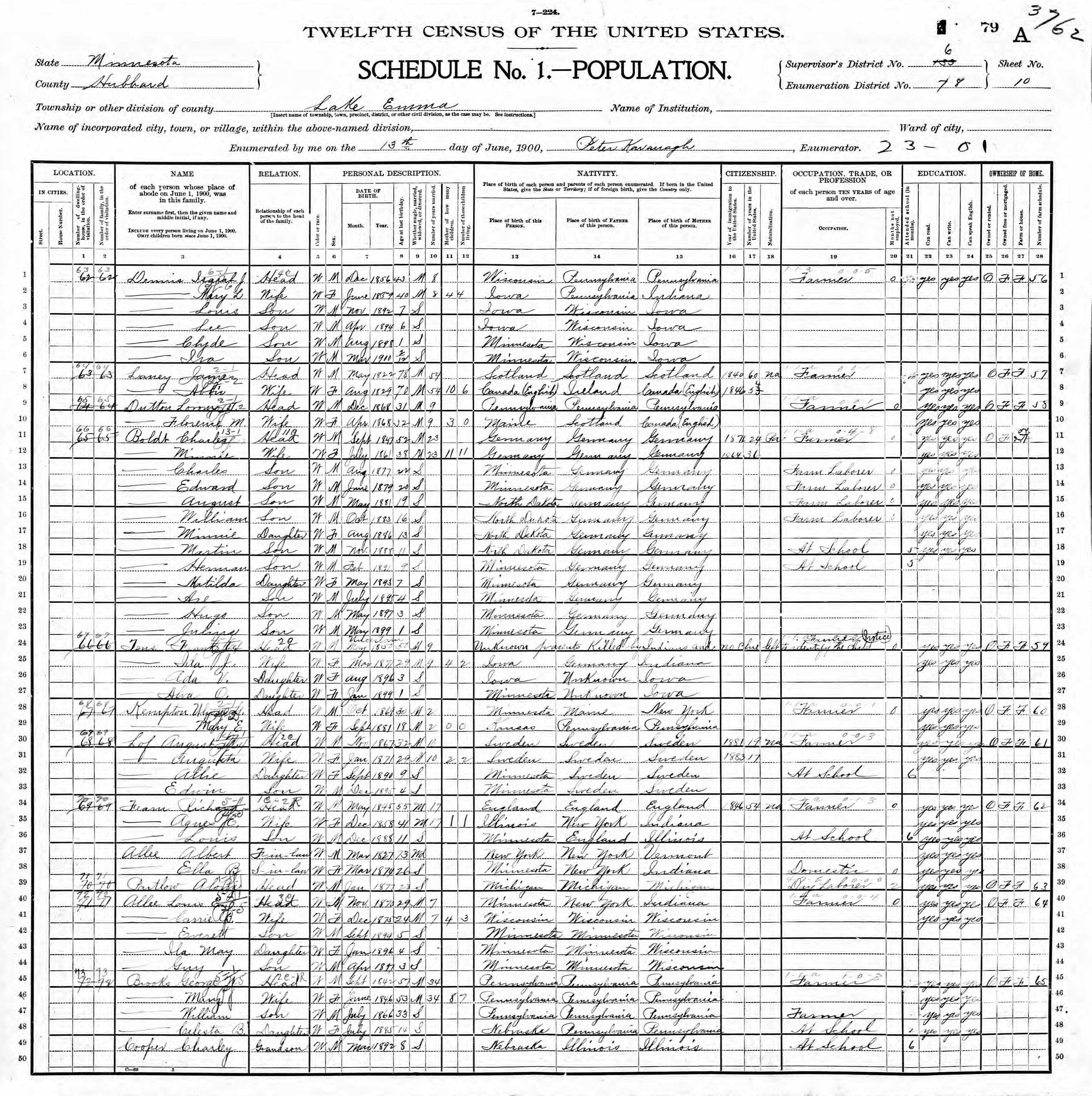 Teus Family 1900 Federal Census Minnesota, Lines 24-27