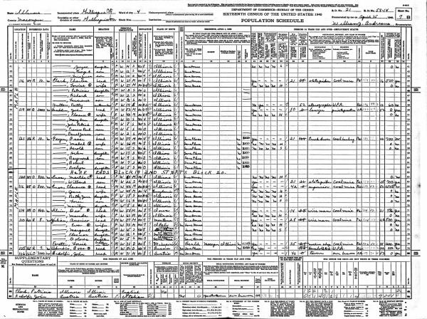 Klein Family 1940 Federal Census Illinois, Lines 71-72