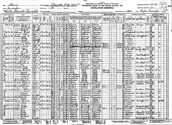 Klein Family 1930 Federal Census Illinois, Lines 19-20