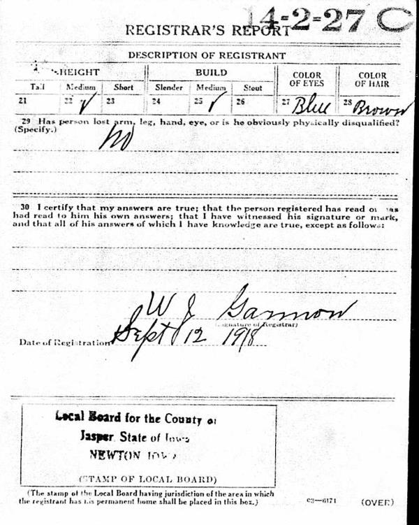 1918 World War I Registration Page 2