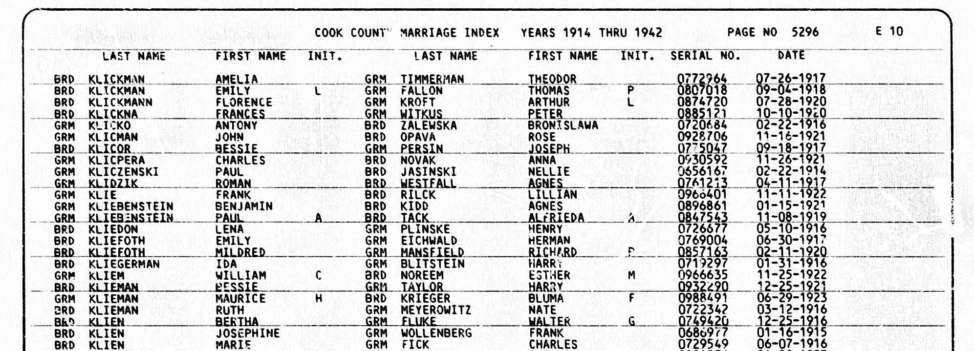1916 Marriage Index