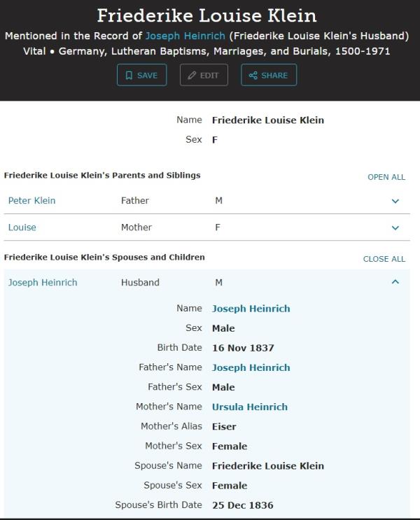 Friederika Louisa Klein were married on June 12, 1866 in Bad Bergzabern, Südliche Weinstraße, Rhineland-Palatinate, Germany. He died.