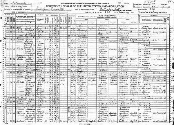 Klein Family 1920 Federal Census Illinois, Lines 13-17