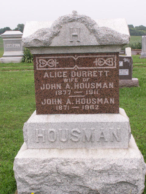 John A. Hausman were married. She died in 1911, at age ~34. She was buried in Bolckow Cemetery, Bolckow, Missouri.