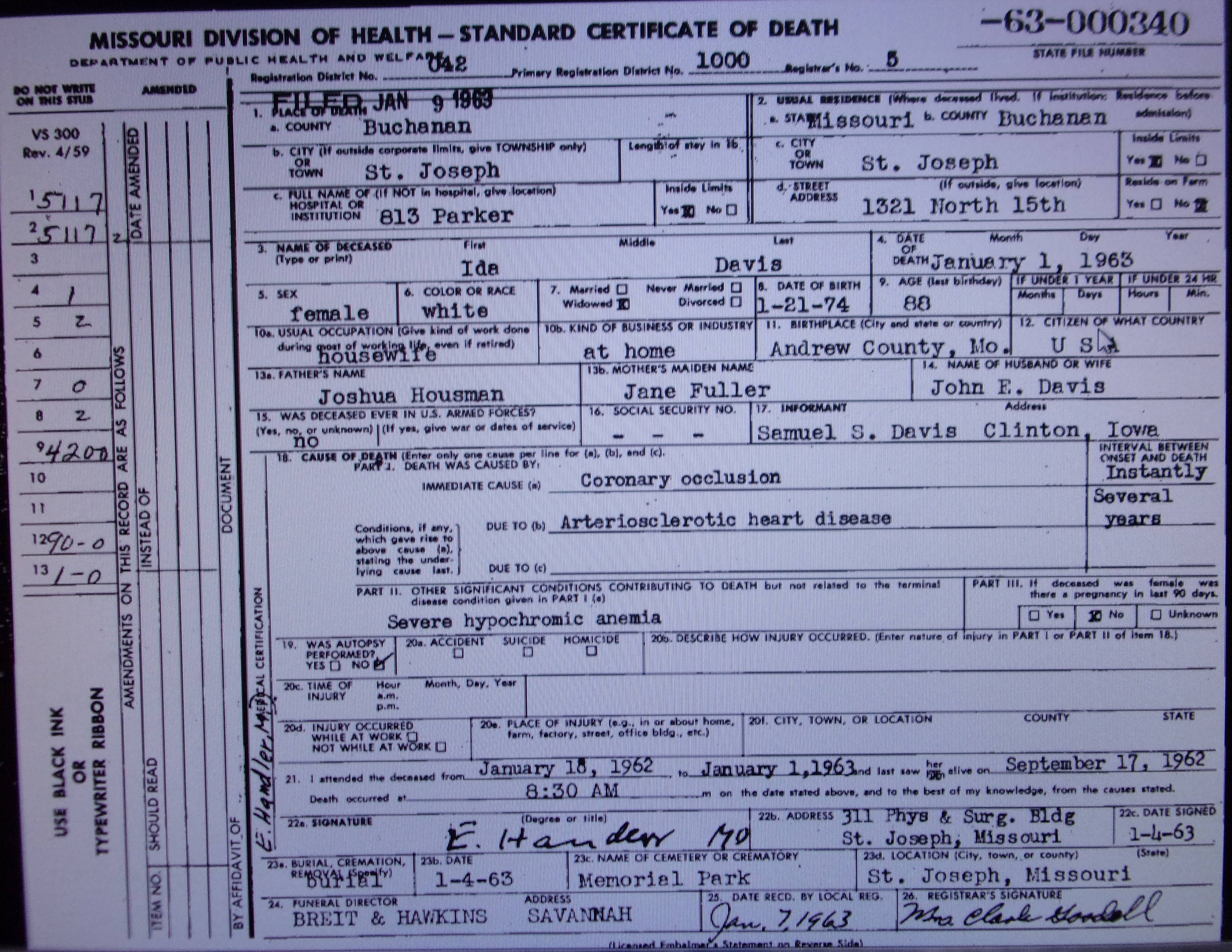 1963 Death Record