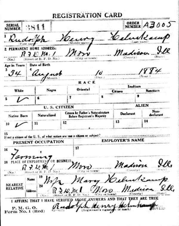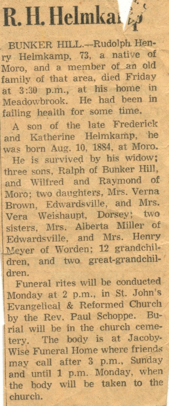 Rudolph Henry Helmkamp was born on August 10, 1884 in Moro, Madison, Illinois, USA. He and