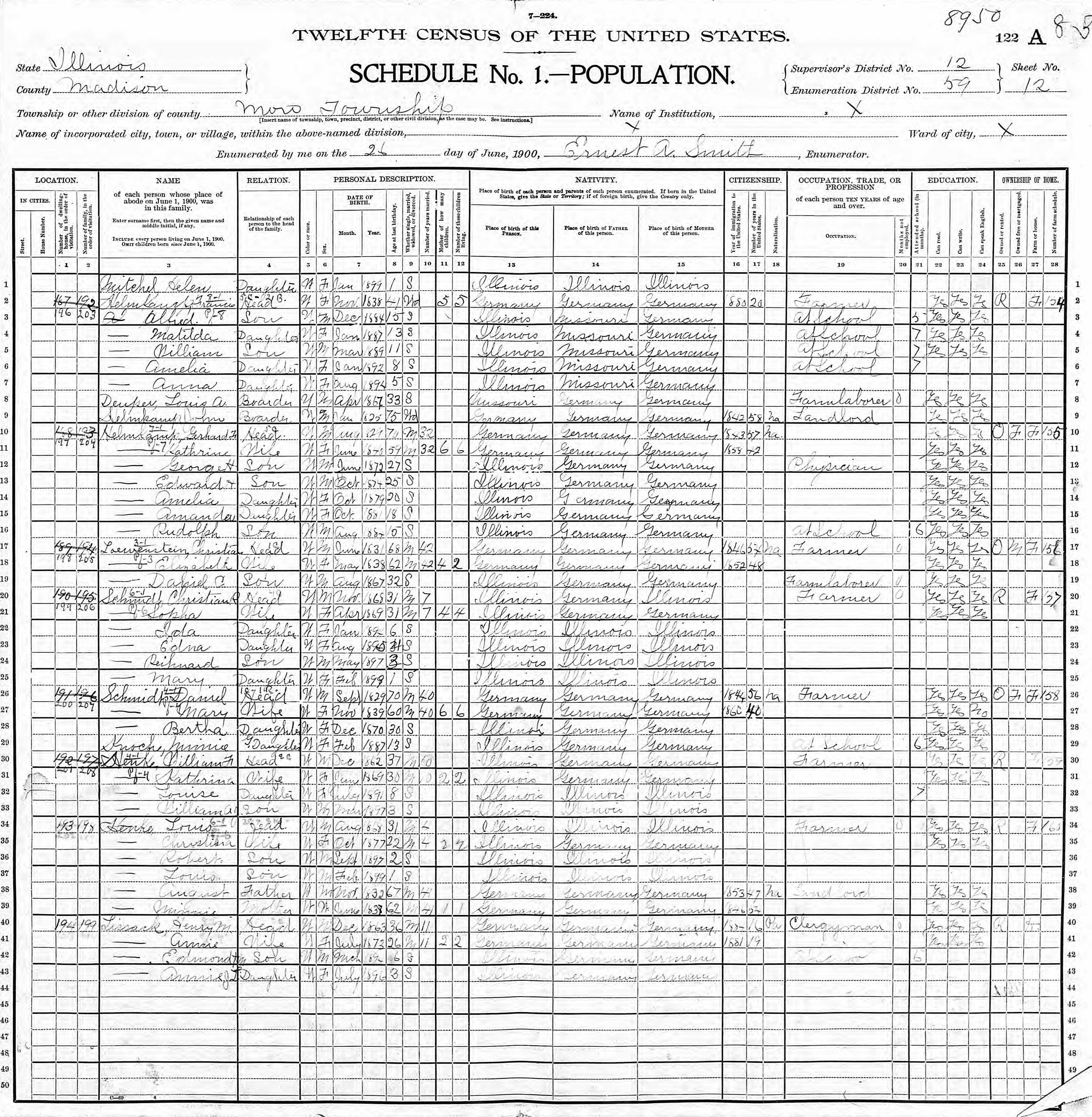 Helmkamp Family 1900 Federal Census Illinois, Lines 2-16