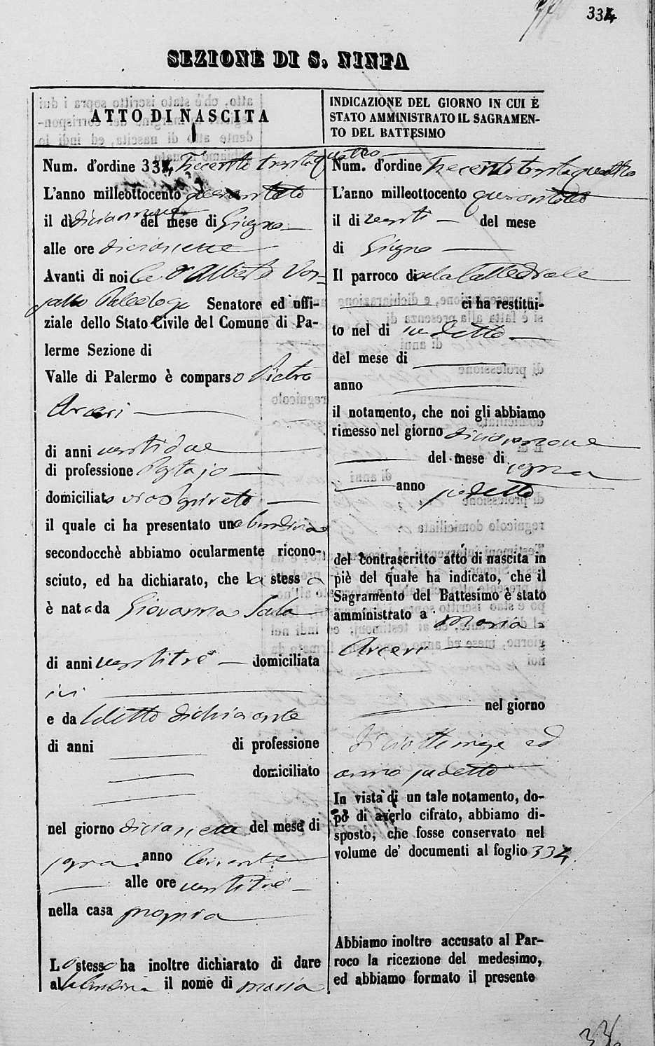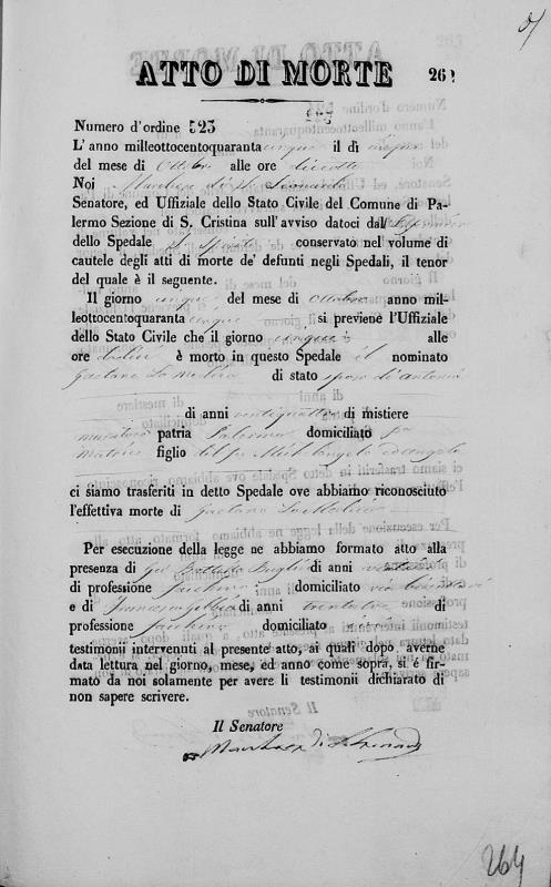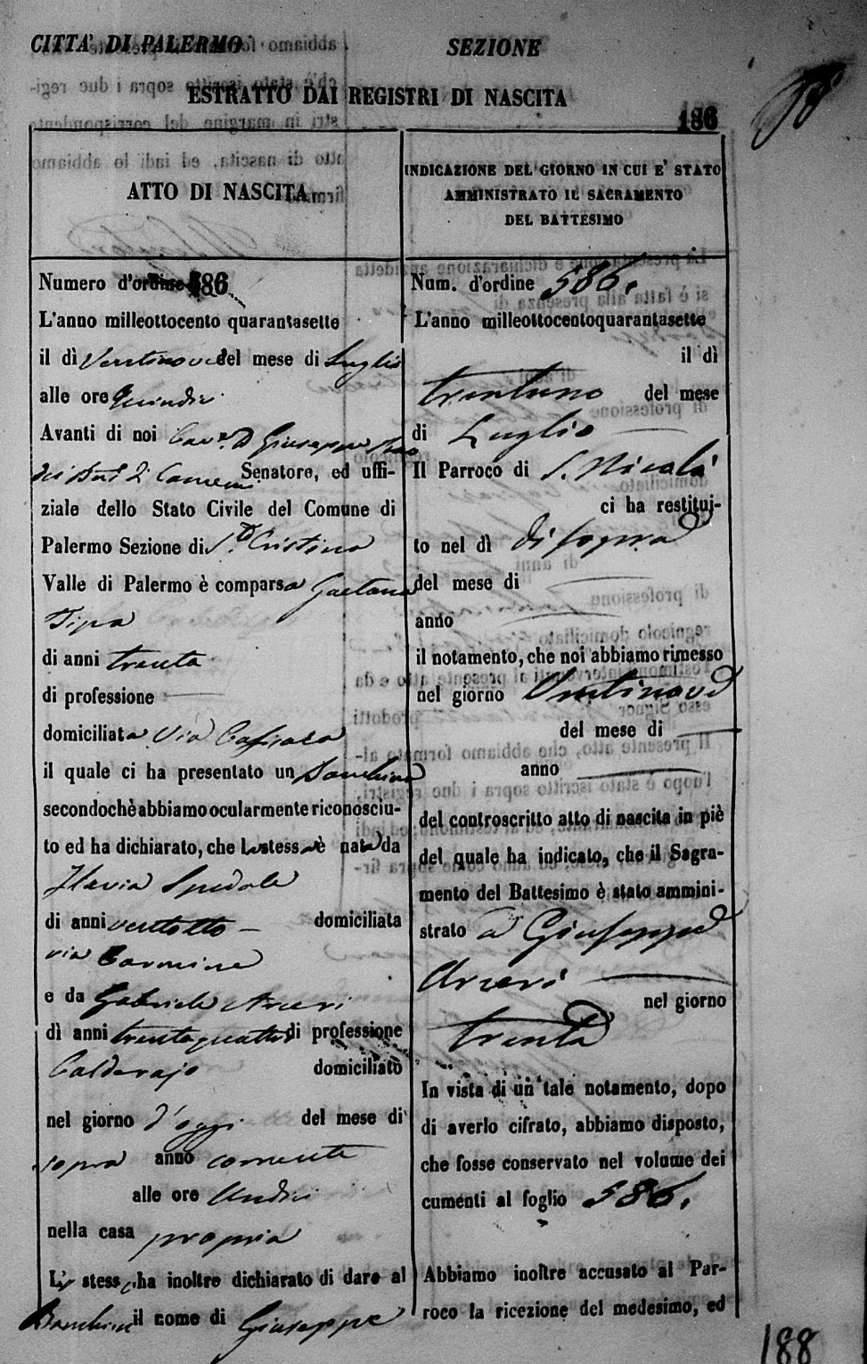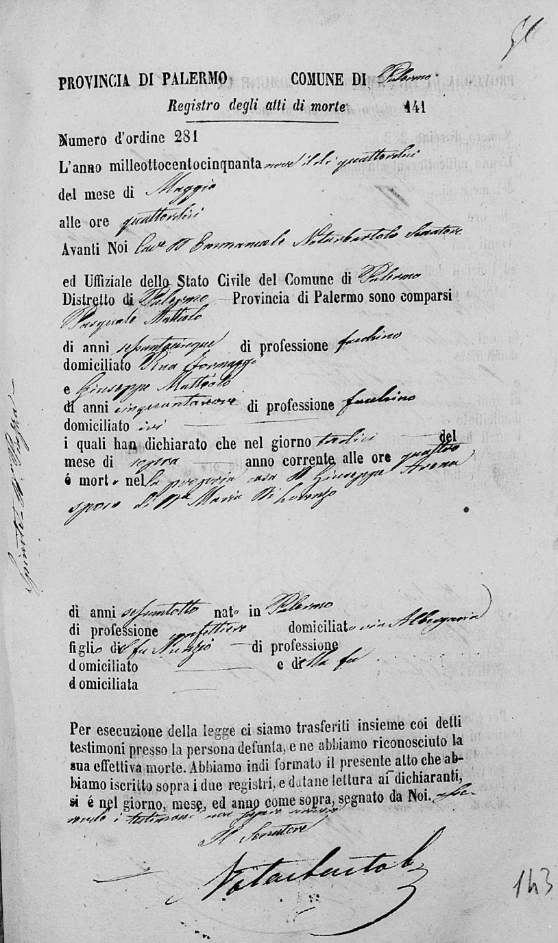 Maddalena Arena were married on April 11, 1851 in Santa Cristina, Palermo, Sicilia, Italy. He died.
