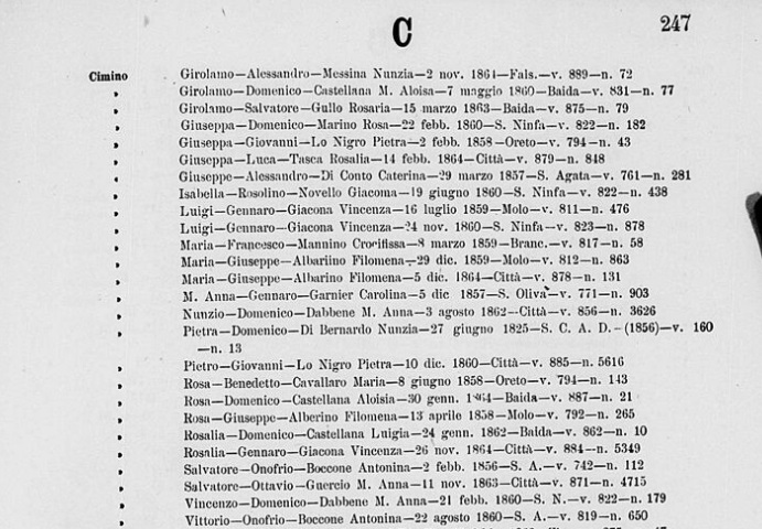 Giuseppe Arceri were married on March 11, 1872 in Palermo, Sicilia, Italy. She died.
