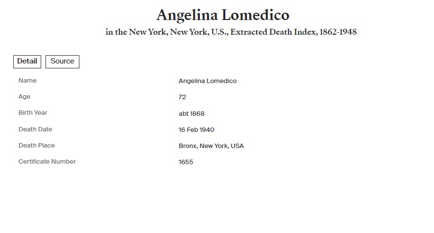| Daughter | Angelina Lomedico Born: 1913, Died: June 11, 1987 |
