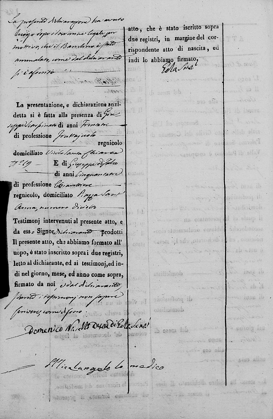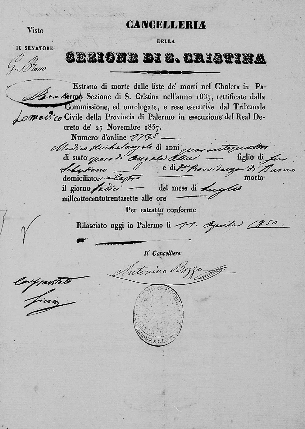 Giuseppe Lomedico were married on April 11, 1851 in Santa Cristina, Palermo, Sicilia, Italy. She died.