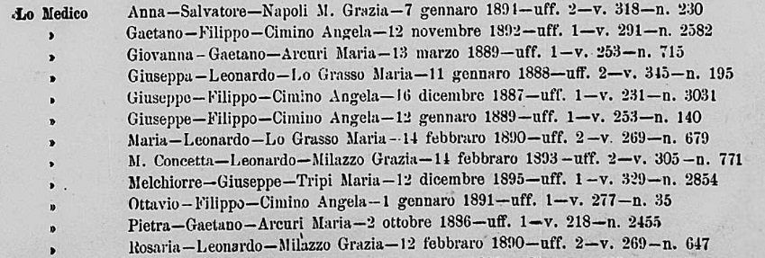 Giuseppe Lomedico was born on November 8, 1858 in Santa Cristina, Palermo, Sicilia, Italy. He and