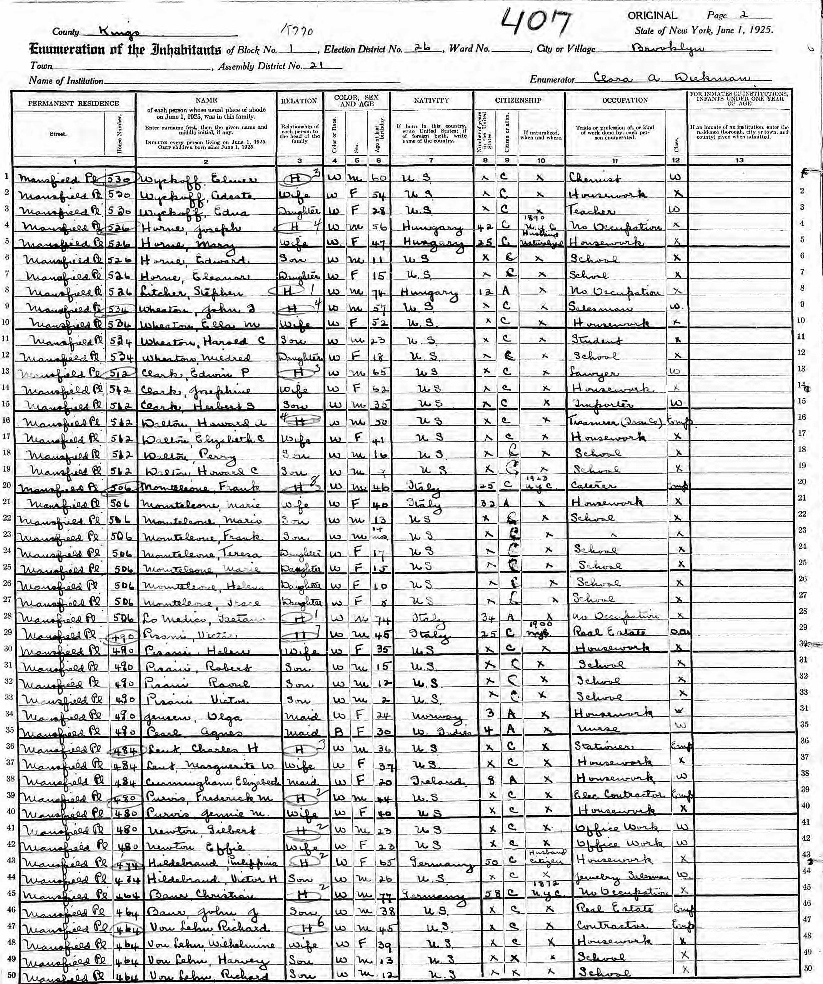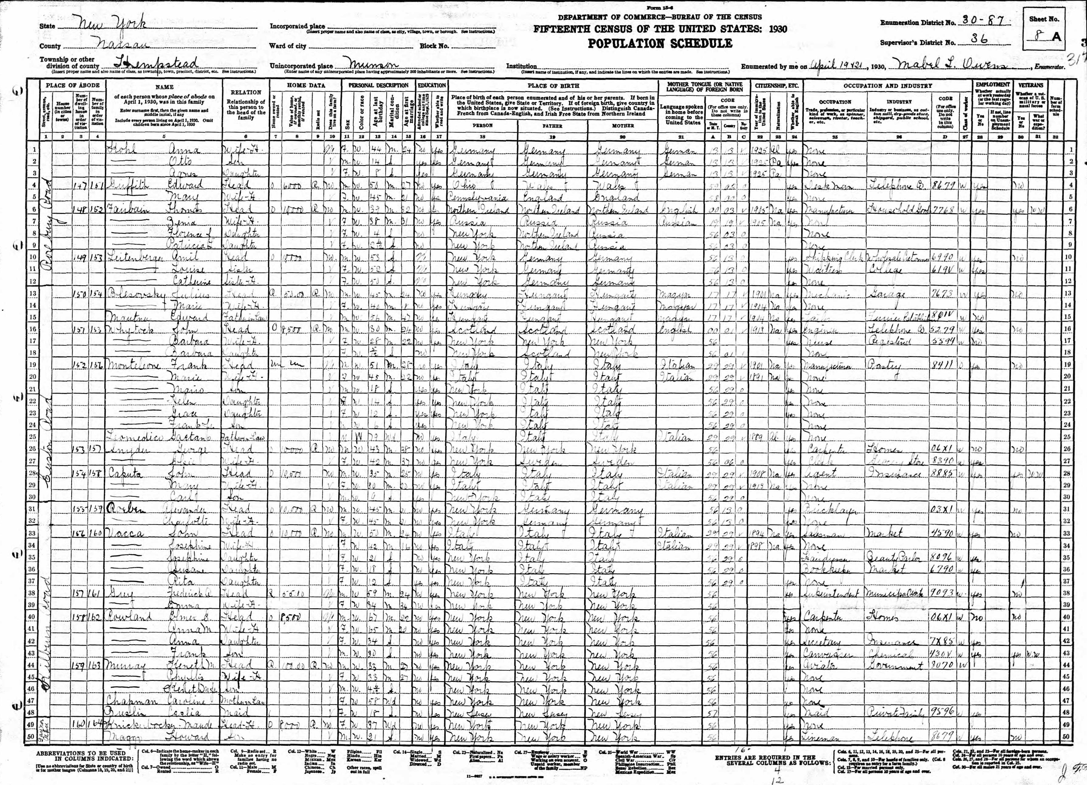 Monteleone Family 1930 Federal Census New York, Lines 19-25