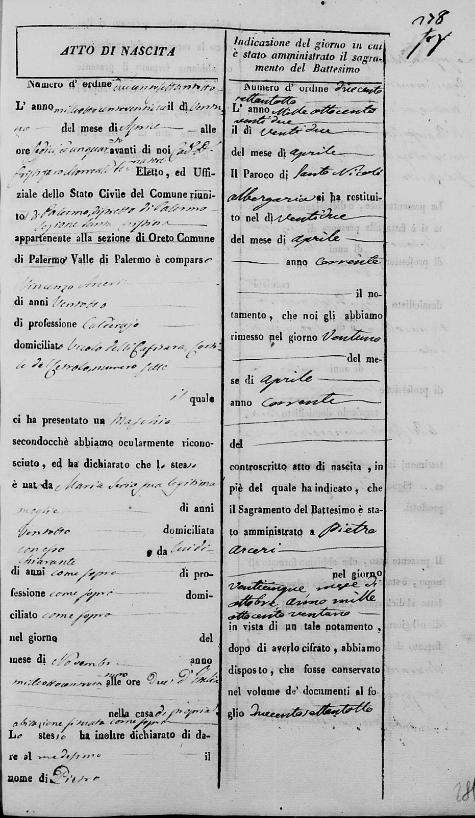 Pietro Arceri was born in November 1821 in Santa Cristina, Palermo, Sicilia, Italy. He died on January 2, 1823, at age 1, in Santa Cristina, Palermo, Sicilia, Italy.