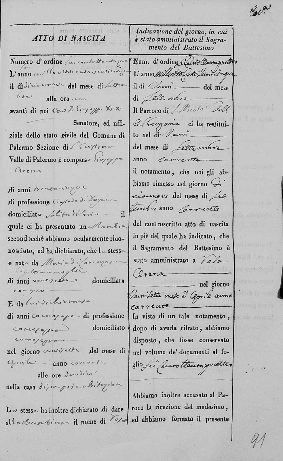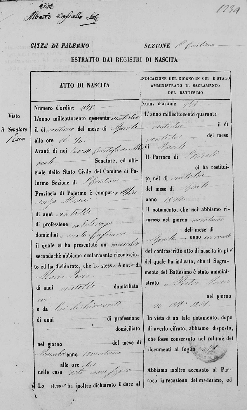 Filippa Arena was born on December 25, 1830 in Santa Cristina, Palermo, Sicilia, Italy. She and