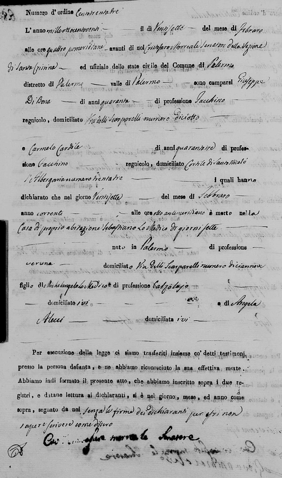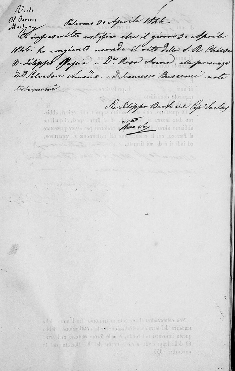 Pietro Cambria were married on April 19, 1852 in Santa Cristina, Palermo, Sicilia, Italy. She died.