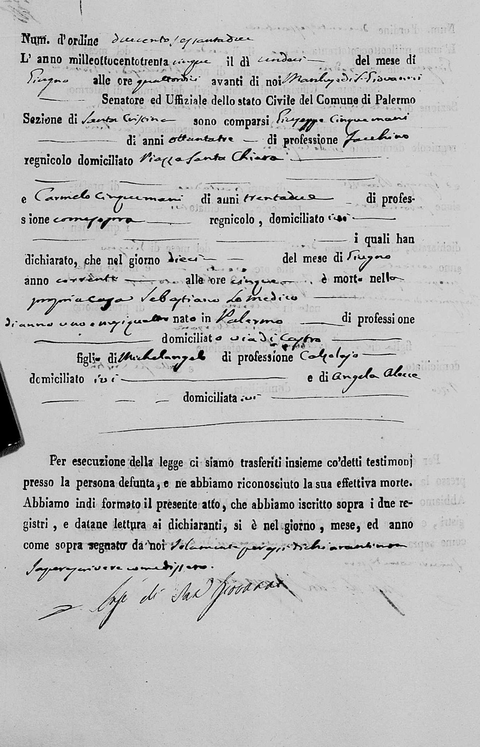 Sebastiano Lomedico was born on July 11, 1822 in Santa Cristina, Palermo, Sicilia, Italy. He died on August 8, 1831, at age 9, in Santa Cristina, Palermo, Sicilia, Italy.